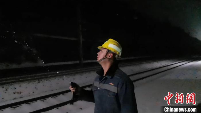 站臺上,寒風(fēng)夾雜著濕冷的空氣襲來,容易在接觸網(wǎng)設(shè)備上覆上一層冰霜,造成安全隱患。每當(dāng)列車經(jīng)過,王晗懿就要不定時站在站臺眺望前方,列車經(jīng)過帶起的寒風(fēng)和雪粒一起吹來,時常打得他睜不開眼。