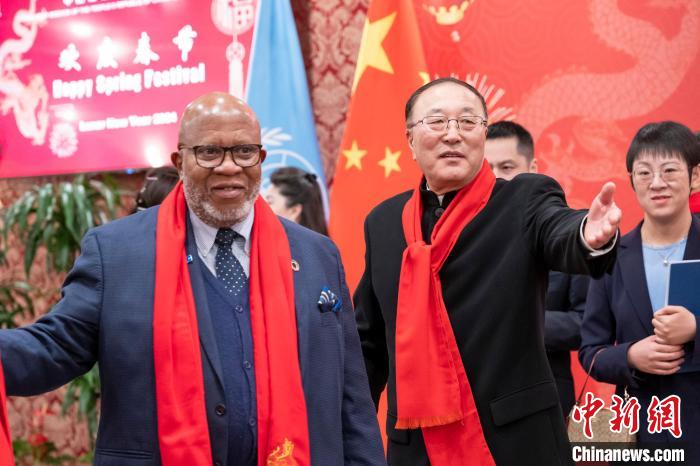 張軍在致辭時向現(xiàn)場來賓致以節(jié)日問候并向祖國人民拜年。他說,春節(jié)是中國最古老、最盛大的傳統(tǒng)節(jié)日,象征著團圓與美滿,傳承著中華文明的基因,賡續(xù)著中華文化的血脈,凝聚著全球華人的家國情懷。春節(jié)作為農(nóng)歷新年也在越來越多走向世界。前不久,在中國和許多國家的積極推動下,聯(lián)合國大會通過決議,將春節(jié)(農(nóng)歷新年)確定為聯(lián)合國假日。這進一步豐富了春節(jié)的世界意義,為更多的人走近中國、品味中國、體驗中國提供了機會。