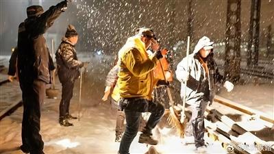 工作人員在線路上進行掃雪除冰作業(yè) 圖據(jù)武漢鐵路局