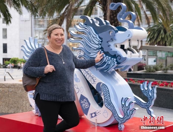 為了迎接中國農(nóng)歷龍年,美國舊金山在不同地點展出設(shè)計風(fēng)格各異的龍雕像,包括“青花瓷龍”“天玉龍”“平安龍”“彩虹龍”和“金運龍”。美國郵政還發(fā)行了龍年生肖紀念郵票,金色象征繁榮,紅色代表好運。