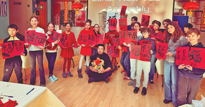 在招待會(huì)上,來賓們?cè)跁ㄕ古_(tái)學(xué)寫“福”字和春聯(lián),在版畫展臺(tái)體驗(yàn)中國雕版印刷技藝,體驗(yàn)中國非遺和年俗互動(dòng)項(xiàng)目,了解中國傳統(tǒng)文化的悠久歷史和傳承發(fā)展等。