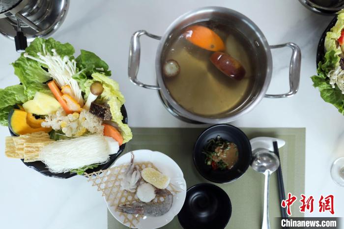 在鍋底加入草莓、橙子等新鮮水果的草莓火鍋。中新社記者 王磊 攝