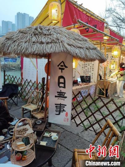 江畔邊的雜草和樹(shù)枝,古色古香的手工制作燈籠,一個(gè)個(gè)由本地的竹子搭建而成的市集攤位,讓人眼前一亮。在桐廬山野風(fēng)物市集,記者了解到很多前來(lái)打卡的游客都是通過(guò)社交媒體了解到這個(gè)市集的,“來(lái)之前做了攻略,這個(gè)市集主要是節(jié)氣和鄉(xiāng)村特色相結(jié)合,我們想來(lái)體驗(yàn)人間煙火,感受一下詩(shī)和遠(yuǎn)方。”