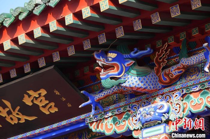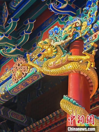 “沈陽故宮各類古建筑上的龍,從材質(zhì)上來說,有琉璃、木雕、石雕等,其中大政殿木雕的‘金龍盤柱’比較有代表性?!鄙蜿柟蕦m博物院研究室副主任張國斌向記者介紹說,作為沈陽故宮中營造時(shí)間最早的建筑之一,大政殿是舉行新君即位、頒詔、元旦慶典、迎接大軍凱旋、舉行國宴等重大活動(dòng)的地方,其造型和裝飾吸收借鑒了漢、滿、蒙、藏等多民族文化元素。