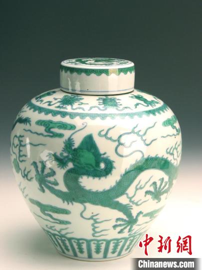 清乾隆款綠釉龍?jiān)萍y蓋罐?!?沈陽故宮博物院 供圖)