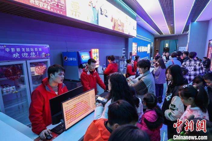 圖為觀影者在購(gòu)票、購(gòu)買(mǎi)零食。 中新網(wǎng)記者 瞿宏倫 攝