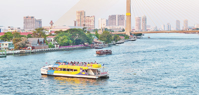 湄南河自北向南貫穿曼谷全城,河兩岸分布著多項(xiàng)文化遺產(chǎn)。圖為春節(jié)期間,游客乘船在湄南河上游覽,感受沿岸自然風(fēng)光和文化魅力。