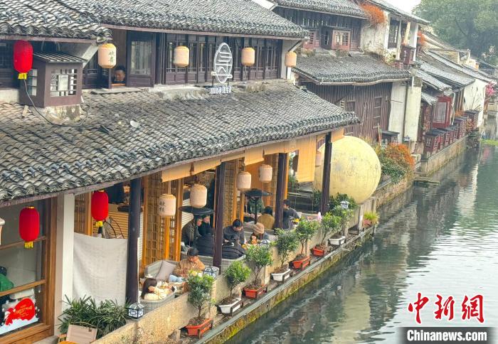 今年春節(jié)期間,倉橋直街河畔的新中式茶館座無虛席。項(xiàng)菁 攝
