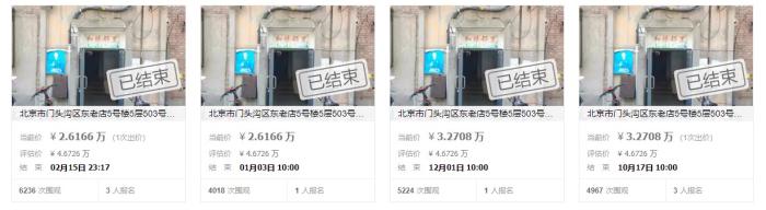 據(jù)阿里資產(chǎn)·司法平臺(tái)顯示的信息,北京市門(mén)頭溝區(qū)東老店5號(hào)樓5層503號(hào)(2%份額)在幾天前結(jié)束了拍賣(mài),最終以26166.6元的價(jià)格被拍下。