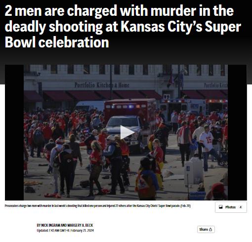 中新網(wǎng)2月21日電 據(jù)美聯(lián)社報道,當(dāng)?shù)貢r間20日,一份公開的法庭文件顯示,美國堪薩斯城“超級碗”游行發(fā)生的槍擊事件中,兩名男子被控謀殺,報道稱“兩人在爭吵后不久掏出了槍并開槍射擊”。