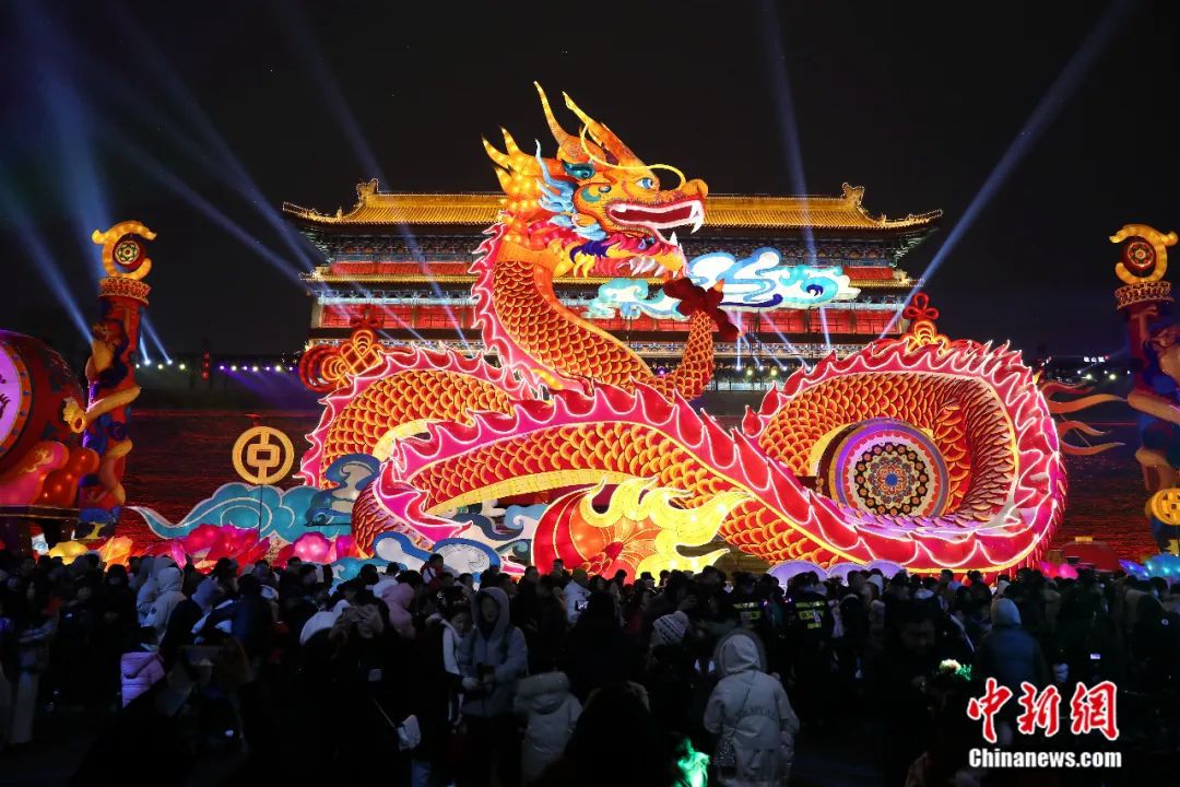 2024年2月,陜西西安,巨型龍燈亮相西安城墻第37屆新春燈會。張遠 攝