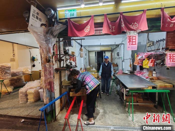 位于臺北萬華區(qū)的三水紅龜伯是經(jīng)營近70年的米食老攤,年逾80歲的陳新桂、董敏卿夫婦每天清晨4點(diǎn)便會手工磨米炊粿?!≈行律缬浾?楊程晨 攝