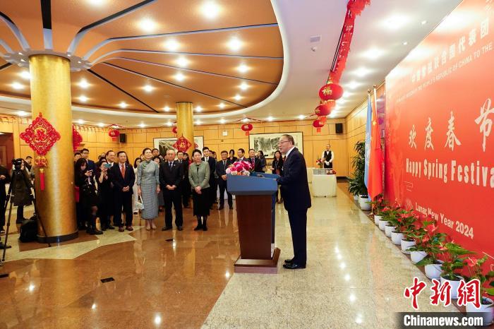 當(dāng)?shù)貢r間2月23日,中國常駐聯(lián)合國代表團(tuán)在紐約駐地為中國籍國際職員和駐紐約新聞機(jī)構(gòu)以及中資企業(yè)代表舉辦龍年元宵節(jié)聯(lián)誼會。中新社記者廖攀攝