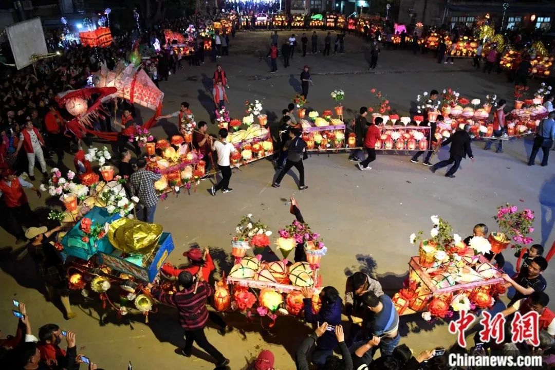 “客家祖地”福建省連城縣芷溪村舉行游花燈活動,吸引民眾體驗(yàn)民俗文化。圖為游花燈現(xiàn)場。中新社記者 張斌 攝
