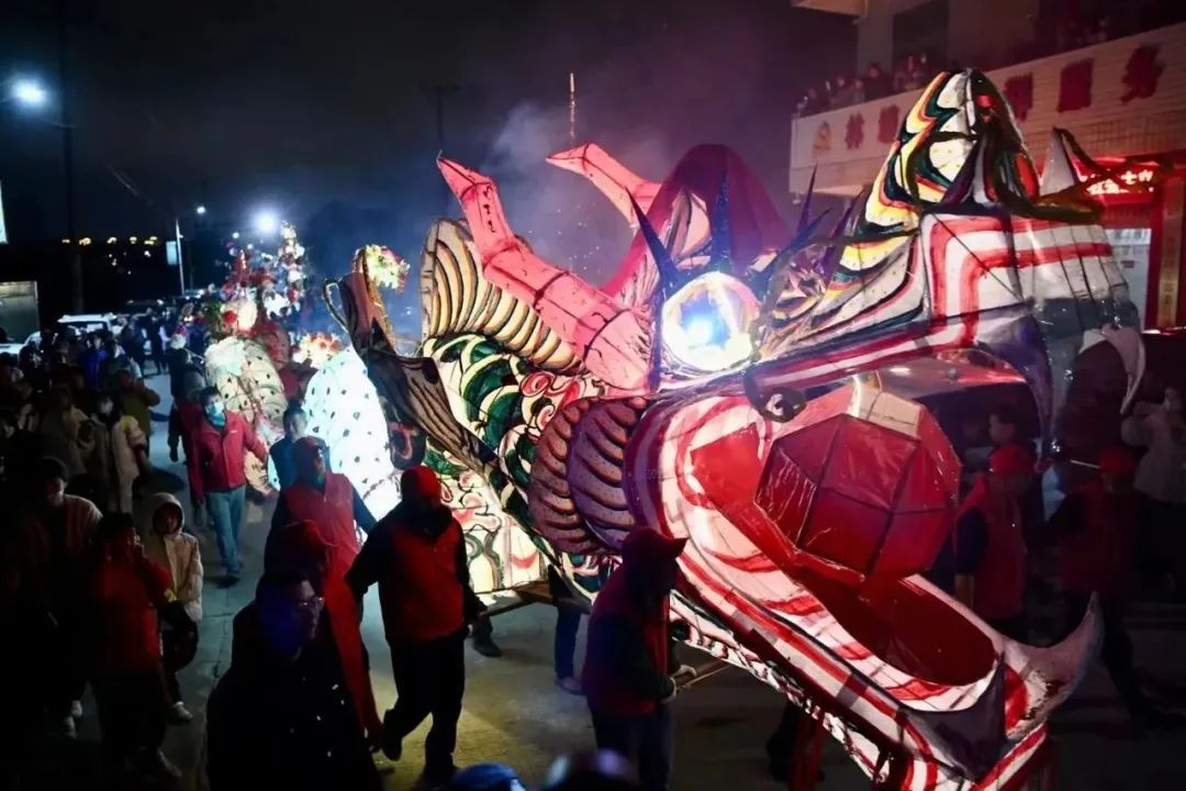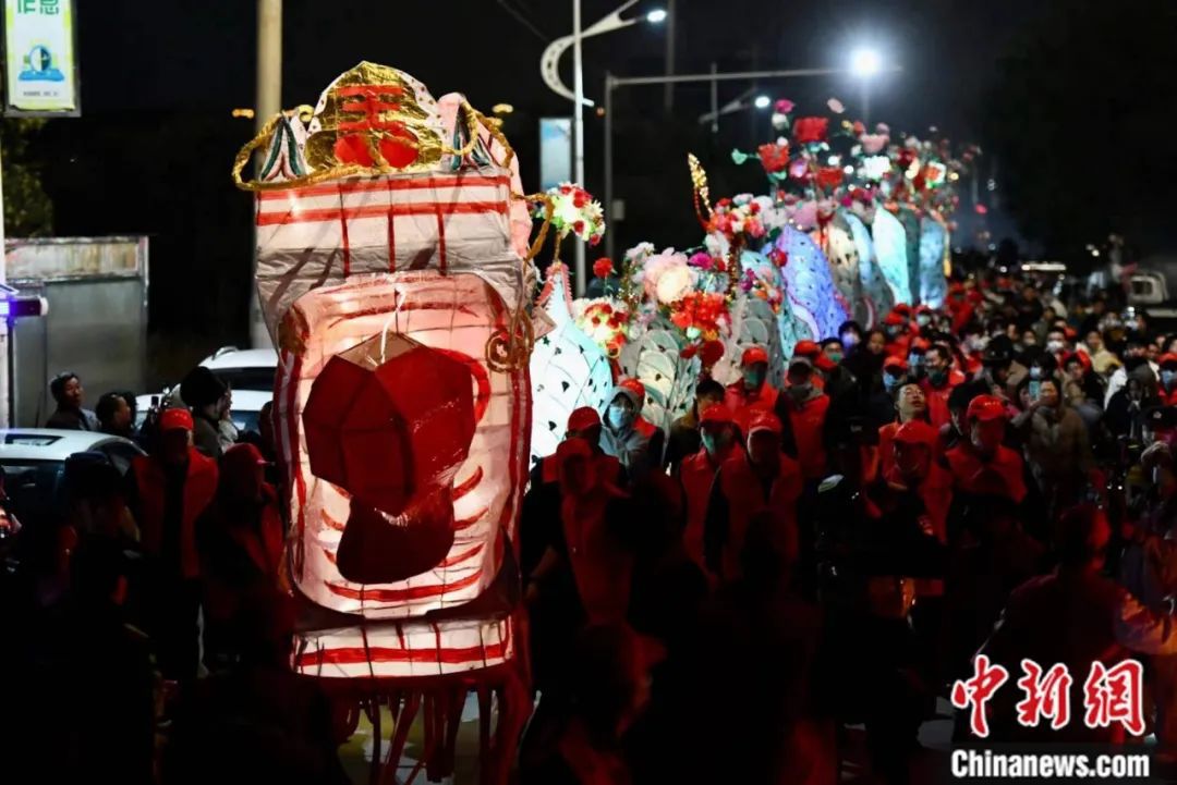 連城林坊游龍,村民們抬著色彩繽紛的大龍環(huán)著村道游走鬧新春。游大龍活動是林坊林氏家族傳統(tǒng)文化藝術(shù)活動的遺產(chǎn),有500多年歷史,意在祈求風(fēng)調(diào)雨順、國泰民安。中新社記者 王東明 攝