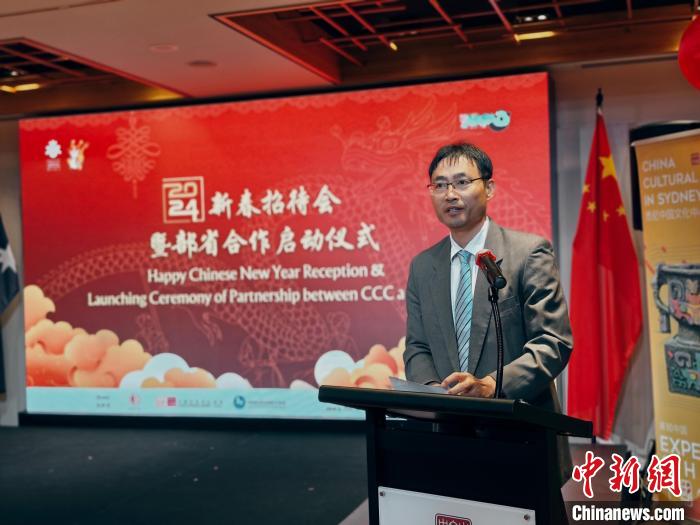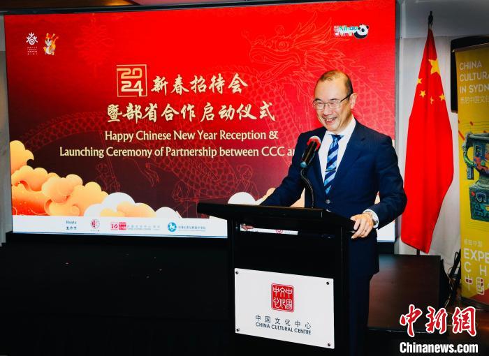 當(dāng)?shù)貢r間2月25日,2024年悉尼中國文化中心新春招待會暨中心與西安市部省合作啟動儀式在悉尼中國文化中心成功舉辦。悉尼中國文化中心主任兼駐悉尼旅游辦事處主任劉東感謝過去一年中心的朋友、伙伴和友好人士給予中心的大力支持。記者 顧時宏 攝