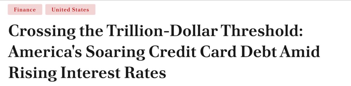 另?yè)?jù)美國(guó)媒體BNN Breaking網(wǎng)站報(bào)道,美國(guó)人的信用卡債務(wù)總額累計(jì)超過(guò)了1萬(wàn)億美元,創(chuàng)歷史新高。美聯(lián)儲(chǔ)激進(jìn)的加息措施推動(dòng)信用卡平均利率大幅增加至22%以上,零售信用卡利息率更是接近驚人的29%。