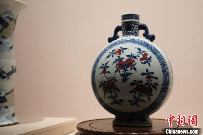 2月27日,正在“御瓷歸來(lái)”展覽上展出的“青花釉里紅折枝石榴紋抱月瓶”。 劉思偉 攝