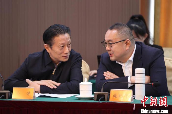 3月5日,全國(guó)政協(xié)十四屆二次會(huì)議僑聯(lián)界小組會(huì)議在北京舉行。全國(guó)政協(xié)委員施乾平(右)與榮洋(左)交流。中新社記者 蔣啟明 攝