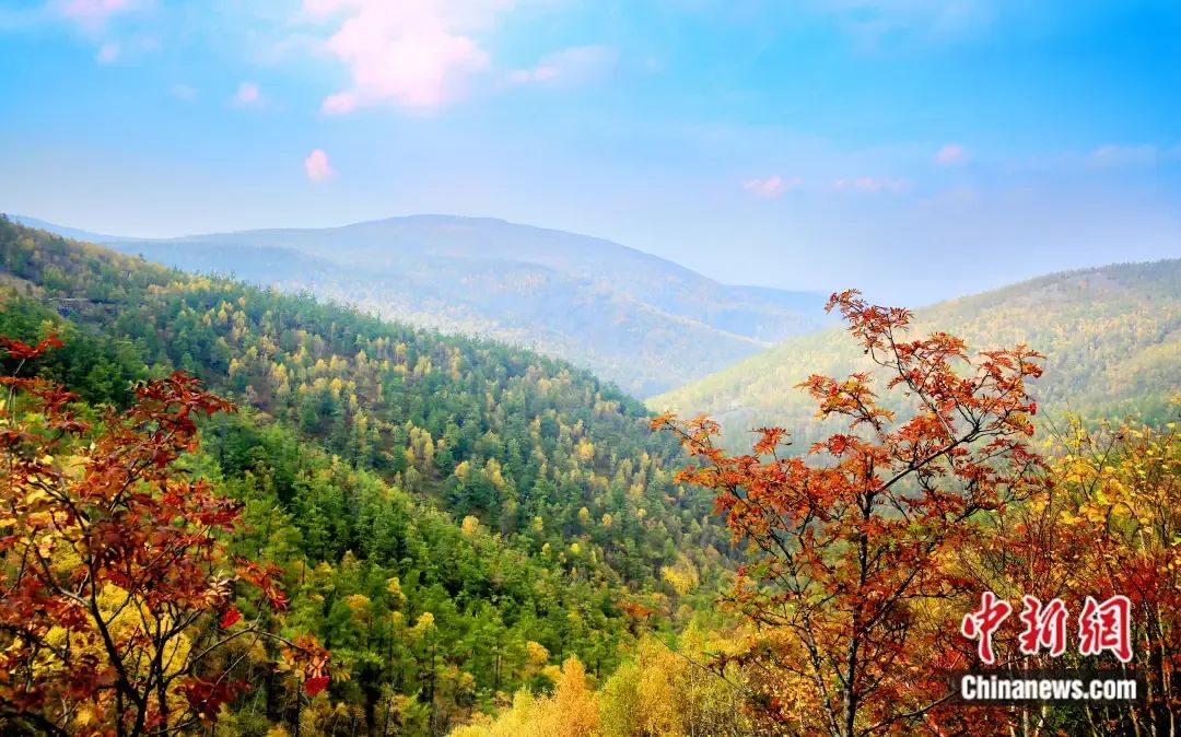 秋天,山嶺間層嶺盡染,似打翻調(diào)色盤。 內(nèi)蒙古森工集團供圖