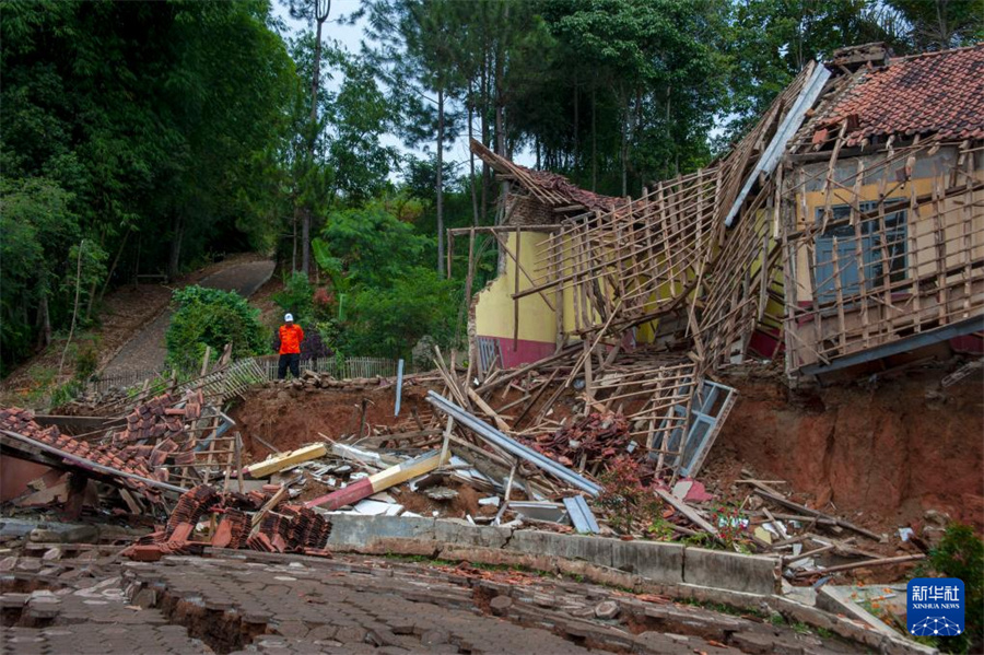 3月4日,一名男子在印度尼西亞西爪哇省的山體滑坡現(xiàn)場查看情況。新華社發(fā)(塞提安賈爾攝)