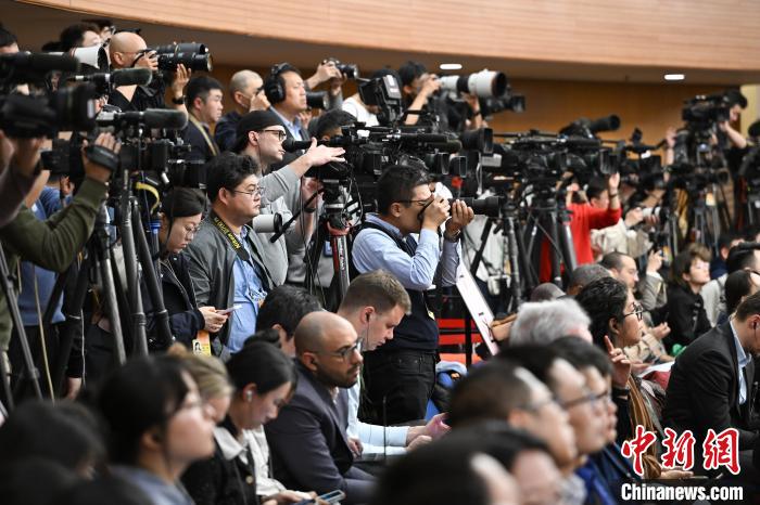 3月6日,十四屆全國人大二次會(huì)議在北京舉行記者會(huì),國家發(fā)展和改革委員會(huì)主任鄭柵潔、財(cái)政部部長藍(lán)佛安、商務(wù)部部長王文濤、中國人民銀行行長潘功勝、中國證券監(jiān)督管理委員會(huì)主席吳清就發(fā)展改革、財(cái)政預(yù)算、商務(wù)、金融證券等相關(guān)問題回答中外記者提問。圖為中外記者在現(xiàn)場(chǎng)采訪?!≈行律缬浾?何蓬磊 攝