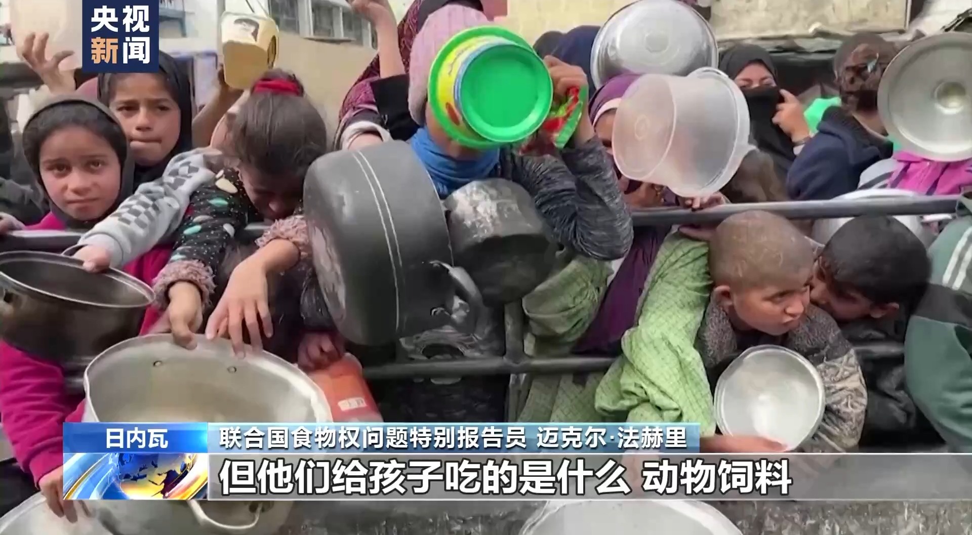 聯(lián)合國(guó)食物權(quán)問(wèn)題特別報(bào)告員 邁克爾·法赫里:在加沙地帶很多人已經(jīng)放棄吃飯,把食物留給孩子。但他們給孩子吃的是什么?動(dòng)物飼料。他們給孩子喝什么水?臟水。這會(huì)讓他們的孩子更容易生病。