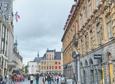 游客在法國里爾老城漫步。