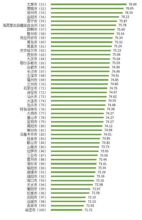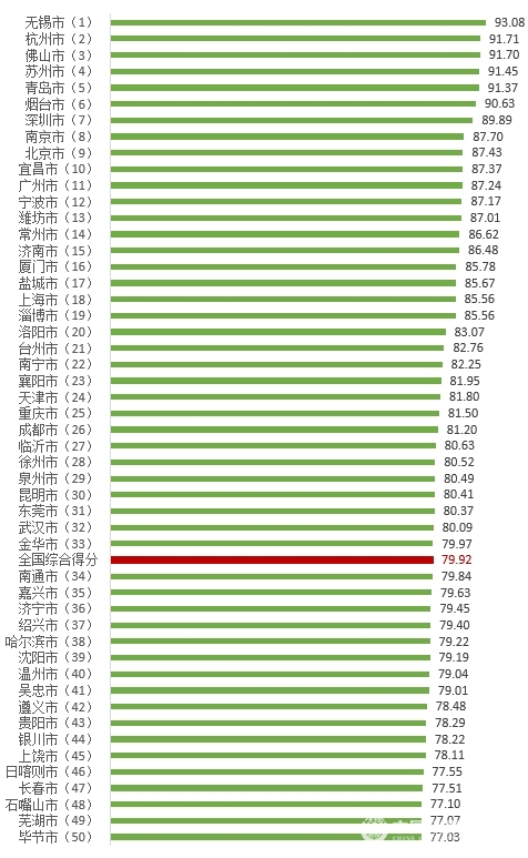 中消協(xié)相關(guān)負(fù)責(zé)人分析指出,100個(gè)被測(cè)評(píng)城市排名總體穩(wěn)定,47個(gè)城市滿意度得分提高,城市得分表現(xiàn)和提升數(shù)量均優(yōu)于2022年。除個(gè)別城市外,東部和南部城市、經(jīng)濟(jì)發(fā)展水平高的城市得分要高于中西部及經(jīng)濟(jì)發(fā)展一般的城市;東部地區(qū)加速引領(lǐng)消費(fèi)者滿意度向好提升,中西部地區(qū)加速追趕,城市之間分差有所降低。無(wú)錫、杭州、佛山、蘇州、青島、煙臺(tái)、深圳、南京、北京、宜昌分列100個(gè)城市消費(fèi)者滿意度綜合得分第一至十名。