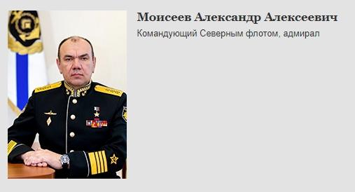 同樣61歲的莫伊謝耶夫曾在北方艦隊長期服役,2018年被任命為黑海艦隊司令,2019年5月被任命為北方艦隊司令。2011年,他被授予俄羅斯英雄稱號。