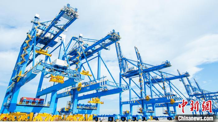 青島港自動化碼頭,振華重工建造的自動化岸橋?!≌袢A重工供圖