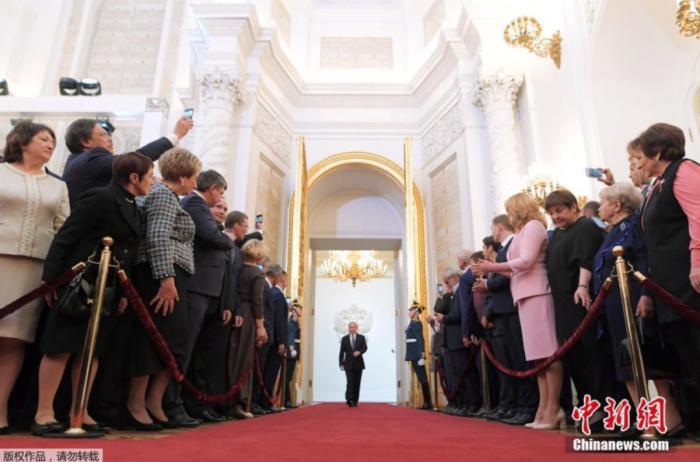 資料圖:當(dāng)?shù)貢r間2018年5月7日,莫斯科舉辦俄羅斯當(dāng)選總統(tǒng)普京就職典禮。