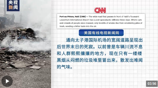 “通向太子港國(guó)際機(jī)場(chǎng)的寬闊道路呈現(xiàn)出后世界末日的死寂。以前曾是車輛川流不息和人群熙熙攘攘的地方,現(xiàn)在只有一縷縷黑煙從悶燃的垃圾堆里冒出來(lái),散發(fā)出難聞的氣味?!泵绹?guó)有線電視新聞網(wǎng)(CNN)網(wǎng)站18日?qǐng)?bào)道了當(dāng)前海地的混亂局勢(shì)。