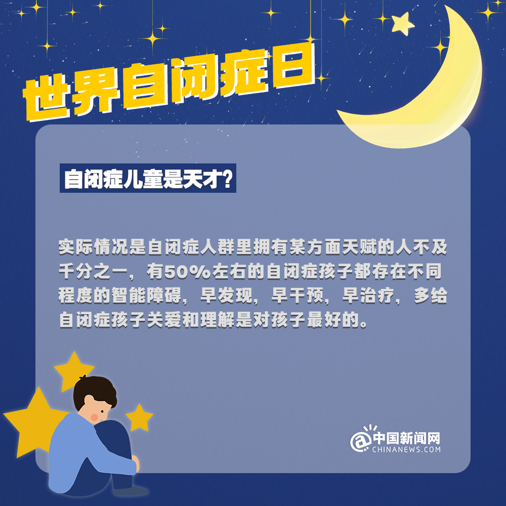 中新網4月2日電 自閉癥兒童,也被稱為“來自星星的孩子”,他們的情緒難以捉摸,他們的思想難以表達,他們像星星一樣孤獨地游離在宇宙中……有數據顯示:目前中國自閉癥患者已超1300萬人。自閉癥有哪些認知誤區(qū)?該如何早期識別自閉癥?詳情↓關愛自閉癥患者,讓星星的孩子有愛不孤單!