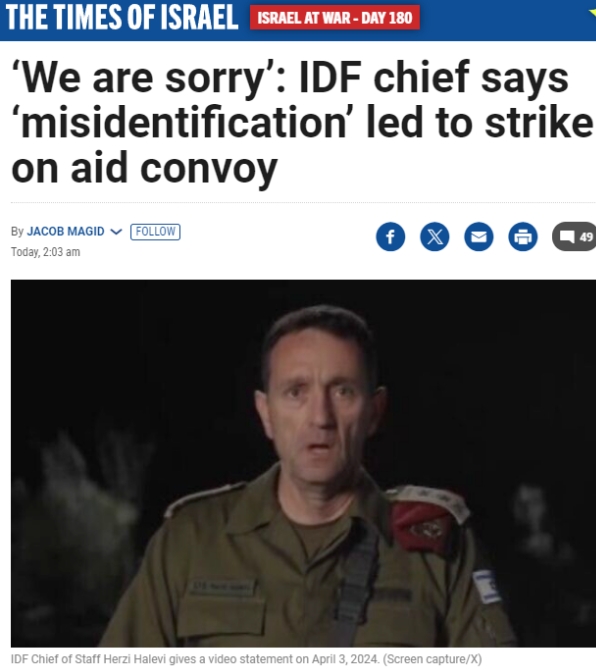 哈萊維表示,以軍無意傷害“世界中央廚房”援助人員,該事件是“在夜間、在戰(zhàn)爭期間、在非常復(fù)雜的條件下因識別錯誤造成的誤傷”,原本不該發(fā)生。他表示,以軍“對無意中傷害到‘世界中央廚房’成員感到抱歉”。