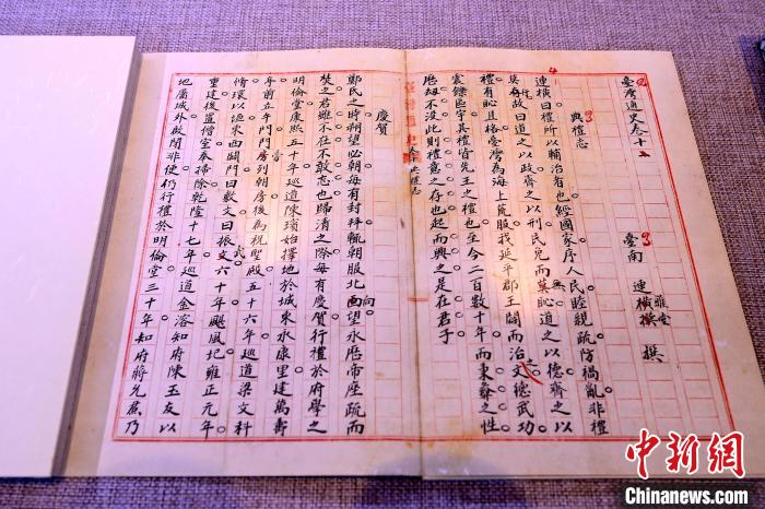 不同版本的《臺灣通史》展陳在福建省連橫文化研究院內(nèi),引人注目。 中新社記者 張金川 攝
