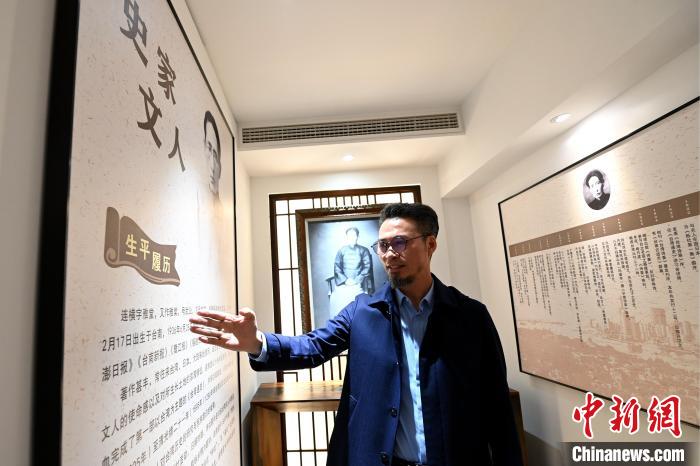 福建省連橫文化研究院理事長連明富向參觀者介紹連橫文化?!≈行律缬浾?張金川 攝