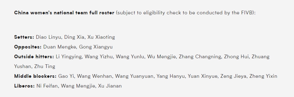 國(guó)際排聯(lián)透露:朱婷入選中國(guó)女排世聯(lián)賽23人名單