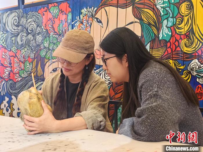 魯婷向記者介紹道:“最初撿了7塊石頭,重新構(gòu)建了一個(gè)故事,創(chuàng)作了第一個(gè)系列《福河兒女圖》,她們共同守護(hù)和潤(rùn)澤著大地,以此表達(dá)生生不息、不斷繁衍的生命狀態(tài)?!?/p>