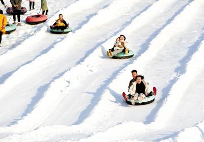 在唐山,冰雪活動(dòng)也成為元旦期間不少人休閑娛樂(lè)的熱門(mén)選擇。唐山文旅集團(tuán)打造的皮影主題樂(lè)園冰雪歡樂(lè)季活動(dòng),在元旦前一天開(kāi)幕,人們?cè)诰o張刺激的極速雪道上馳騁,在以“雪如意”為原型建設(shè)的冰滑梯上飛馳而下。