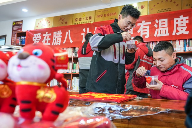 人民網(wǎng)北京1月8日(池夢蕊 閆兆松)1月7日,盡管天氣非常寒冷,但是在位于順義區(qū)勝利街道建北一社區(qū)的“小哥驛站”里卻是歡聲笑語、暖意洋洋。原來,由順義區(qū)勝利街道非公企業(yè)聯(lián)合會黨支部、建北一社區(qū)黨總支聯(lián)合舉辦的“愛在臘八,讓城市更有溫度”主題活動正在這里暖心舉行。一碗碗熱氣騰騰、香甜四溢的臘八粥為正在這里臨時休息的快遞小哥送去濃濃的關愛。勝利街道工委副書記、辦事處主任張家豐、工委副書記薛靜、組織部長石曉靜、建北一社區(qū)黨總支書記顧濤以及夏禾拉面、更讀書社、順批醫(yī)藥等愛心單位代表參與了本次公益活動。