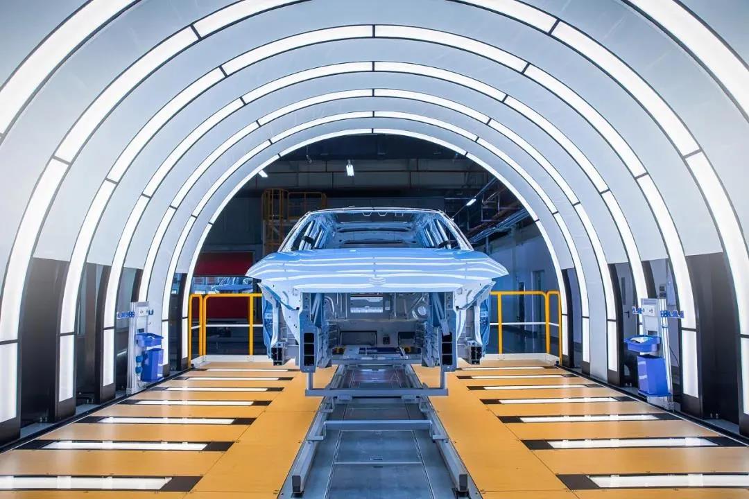 在江淮蔚來先進制造基地里拍攝的智能新能源汽車生產線。張大崗攝