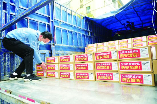 1月10日中午,一輛載著防疫物資的卡車從浙江義烏科創(chuàng)園出發(fā),駛向西安。車上共有118桶公共室內(nèi)外環(huán)境長效納米物理抗菌消殺液,還有專為一線抗疫人員準(zhǔn)備的106箱抗菌防護(hù)加強(qiáng)噴霧。據(jù)悉,前段時(shí)間,西安疫情防控形勢嚴(yán)峻,該捐贈企業(yè)聯(lián)系陜西省總工會、團(tuán)省委及西安市幾家重點(diǎn)醫(yī)院進(jìn)行捐贈,希望為抗疫貢獻(xiàn)一份力量。(錢旭升)