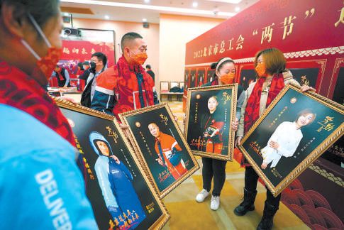 活動現(xiàn)場,在喜慶歡快的音樂聲中,一幅幅裝幀精美的“微笑照”展示著勞動者最美的瞬間,一個個“福包”蘊(yùn)含著北京市總工會對一線職工的關(guān)心關(guān)愛。打開“福包”,“干貨”滿滿——圍巾、手套、定制保溫杯、春聯(lián)、窗花、口罩一應(yīng)俱全。記者了解到,寒冬臘月,為了能讓一線勞動者舒心工作,感受到實(shí)實(shí)在在的溫暖,市總工會在挑選“福包”產(chǎn)品時特意以戶外防寒用品、防疫用品為主,并搭配新春特色文化用品。
