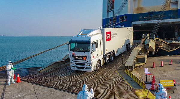 1月15日上午,載運著6輛北京冬奧會轉(zhuǎn)播車的韓國籍“現(xiàn)代英勇”輪靠泊天津港。本批冬奧物資由天津出入境邊防檢查總站東港邊檢站完成快速入境查驗后,將直接運送至北京冬奧場館。