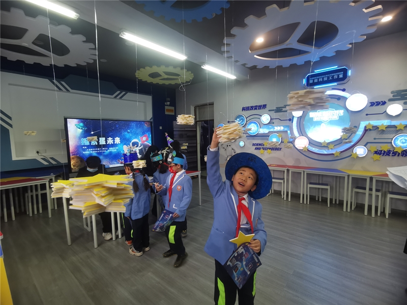 為進(jìn)一步減輕學(xué)生的課業(yè)負(fù)擔(dān),更好地促進(jìn)學(xué)生們的全面發(fā)展,該校變“常規(guī)考試”為“學(xué)科素養(yǎng)考核”,學(xué)業(yè)評(píng)價(jià)借助“天宮之旅”項(xiàng)目式研學(xué)的形式進(jìn)行,圍繞語(yǔ)文、數(shù)學(xué)、英語(yǔ)、體育、音樂(lè)、科學(xué)、美術(shù)七門(mén)學(xué)科,分一、二年級(jí)設(shè)置了“天宮生活艙”“探索星未來(lái)”“星球?qū)?duì)碰”“太空加油站”等“關(guān)卡”,學(xué)生們通過(guò)“闖關(guān)”既鞏固了知識(shí),又提高了學(xué)習(xí)興趣。