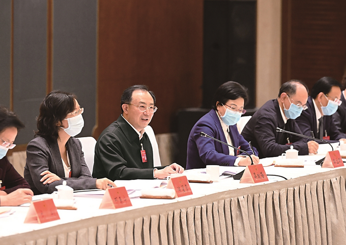 20日下午,省人大代表、省委書記吳政隆到所在的南京代表團(tuán),與代表們一起審議政府工作報(bào)告。 本報(bào)記者 吳勝 攝