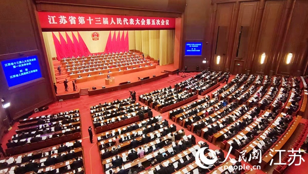 江蘇省十三屆人民代表大會(huì)第五次會(huì)議現(xiàn)場(chǎng)。人民網(wǎng) 耿志超攝