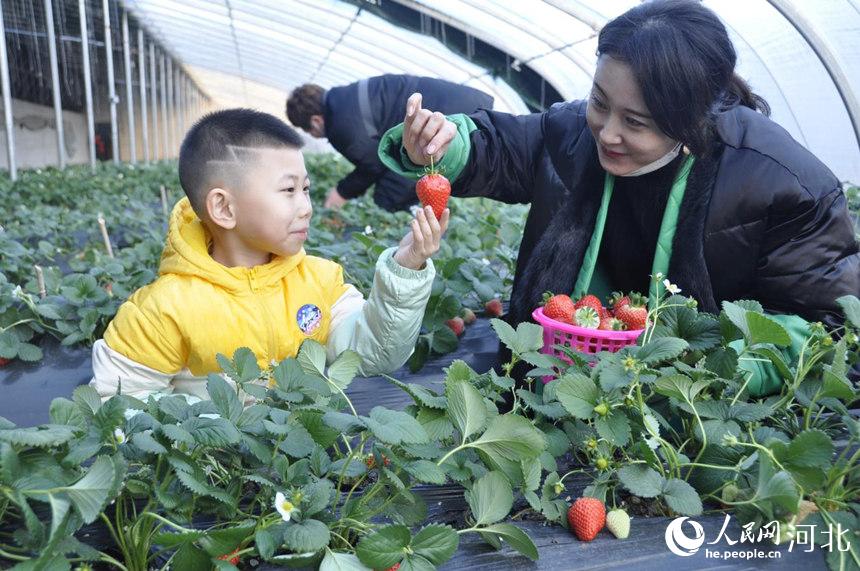 在溫暖如春的大棚內可以看到,新鮮的草莓掛滿田壟,吸引著遷安市域內眾多游客競相采摘?!斑@里的草莓個頭大,顏色艷,嘗起來格外香甜。我們邊摘邊吃,既能吃到新鮮的草莓,又能感受農村的生活氛圍?!睂iT從楊店子街道前來采摘草莓的王女士忍不住夸贊。