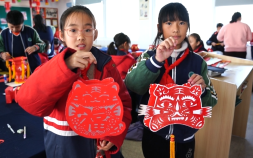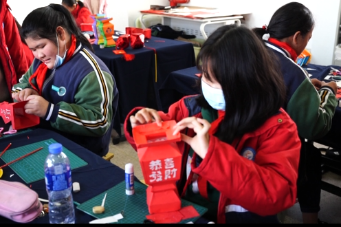 曹村鎮(zhèn)學(xué)校曼妙燈彩課程指導(dǎo)老師李仁秋說:“做一個虎年主題的燈彩,來迎接中國傳統(tǒng)的春節(jié),也感受下中國傳統(tǒng)的文化?!?/p>